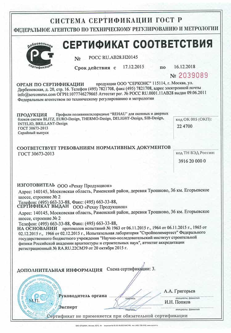 Записаться на замер сегодняОкна предлагаемые покупателям Оконного завода Гранд изготавливаются на специализированных заводах, имеют все необходимые свидетельства и сертификаты, и соответствуют всем эксплуатационным нормам.